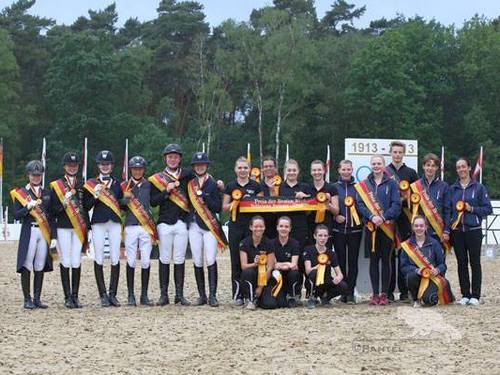 Die Sieger aus dem Jahr 2014 (Brakel/Westfalen) und auch die Vorjahres-Gewinner vom VV Ingelsberg aus Bayern hatten in anno 2016 das Nachsehen. Mit 7,526 setzten sich im Endergebnis die starken Rheinland-Pfälzer durch. Die Mannschaft wurde von Alexandra Dietrich longiert und startete auf dem erfahrenen Pferd Celebration. Bereits in der Pflicht hatte sich die Mannschaft fast drei Zehntel Vorsprung erarbeitet. In der ersten Kür am Samstag hatte sich dann Brakel, der Vize-Europameister von 2014, knapp durchgesetzt. Mit dem finalen Kürauftritt machten die Rheinland-Pfälzer dann in der Summe ihren ersten Preis-der-Besten-Triumph mit einem deutlichen Sieg perfekt. 7,925 Punkte bedeuteten die Höchstwertung des Wochenendes bei den Gruppen. Platz zwei sicherten sich die letztjährigen Championatsvertreter vom VV Ingelsberg.