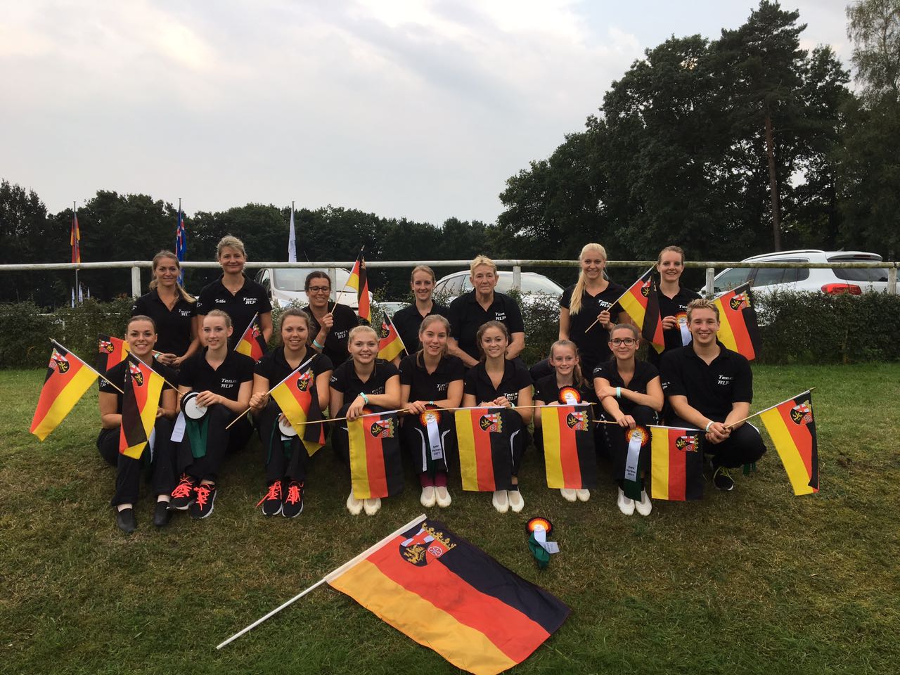 Nach einer sehr guten Pflicht im Einzelvoltigieren der Damen lag Jasmin auf Rang 18. Nancy erturnte sich mit einer guten Pflicht Platz 25. leider hatte sie in der Kür einen Sturz der sie etwas nach hinten warf sodass sie das Finale der besten 20 leider nicht erreicht hatte. Jasmin turnte eine Ausdrucksstarke Kür und schob sich auf Rang 12 vor. Nach dem Technikprogramm, welches sie sauber und fehlerfrei Turnern konnte machte sie auch hier Plätze gut und landete auf Rang 9 und auch die Finale Kür konnte sie nochmal sauber durchturnen und konnte ihren 9. Platz verteidigen. Das Doppel Glahn/ Marschall voltigierte im ersten Umlauf und mit einem kleinen Wackler in der Kür auf Rang 6. Am Sonntag im finalen Umlauf turnten die beiden eine ausdrucksstarke, saubere Kür und wurden mit der dritt besten Kür im zweiten Umlauf belohnt. Im Endklassement blieben die beiden auf Rang 6. Alle drei Turnten auf Nabucco mit Jürgen Köhler an der Longe.